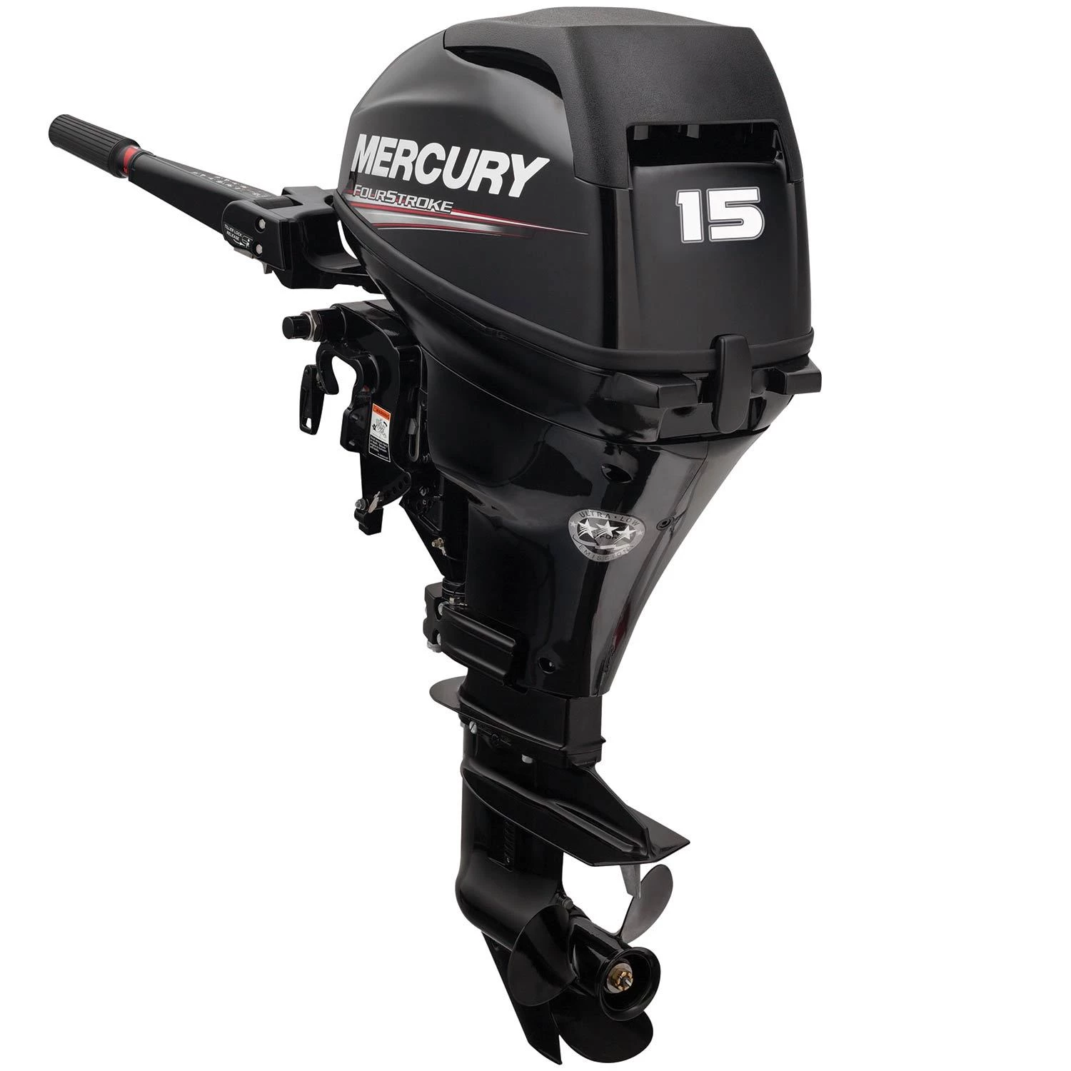 | Note: These Mercury outboards have 4-stroke engines and, like virtually all 4-stroke engines, depend on oil in their crankcases for lubrication. To prevent the oil from leaking during transport, the engines are not shipped with oil in their crankcases. You must put the correct amount and grade of oil in the crankcase prior to the first use or you will cause extensive damage to your engine, which is not covered by your engine’s warranty. Please read the owner’s manual for more information. For U.S. shipment ONLY. |
