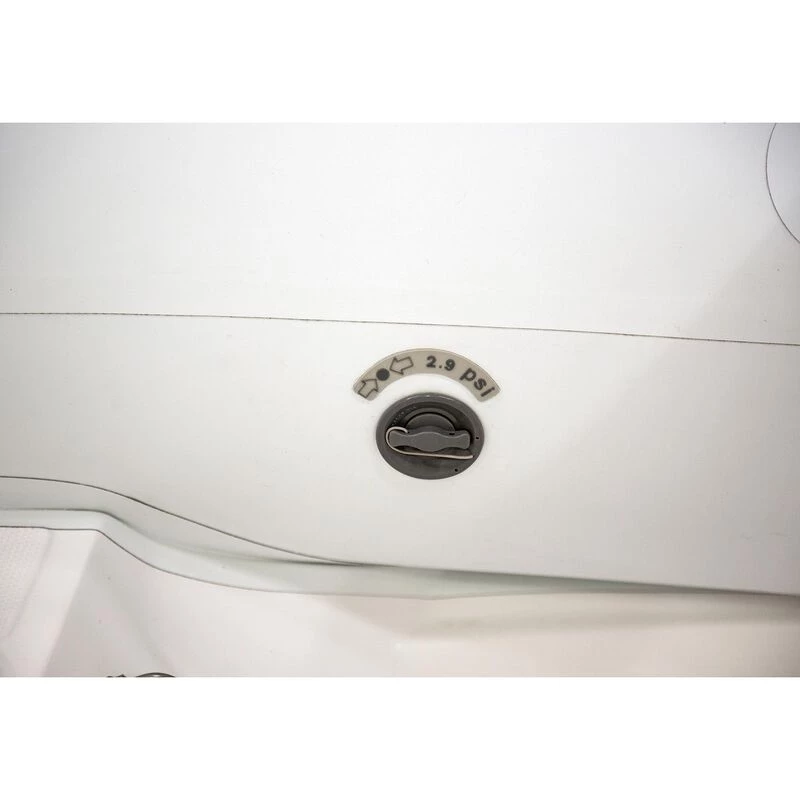 Equipped with a watertight forward storage compartment and roomy interior for storing cargo. Pennel Orca 215 Hypalon fabric with Halkey-Roberts inflation valves and four lift points for davit attachment. Boat includes seat, pump, oars and repair kit.